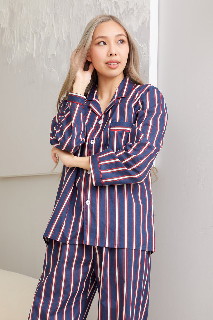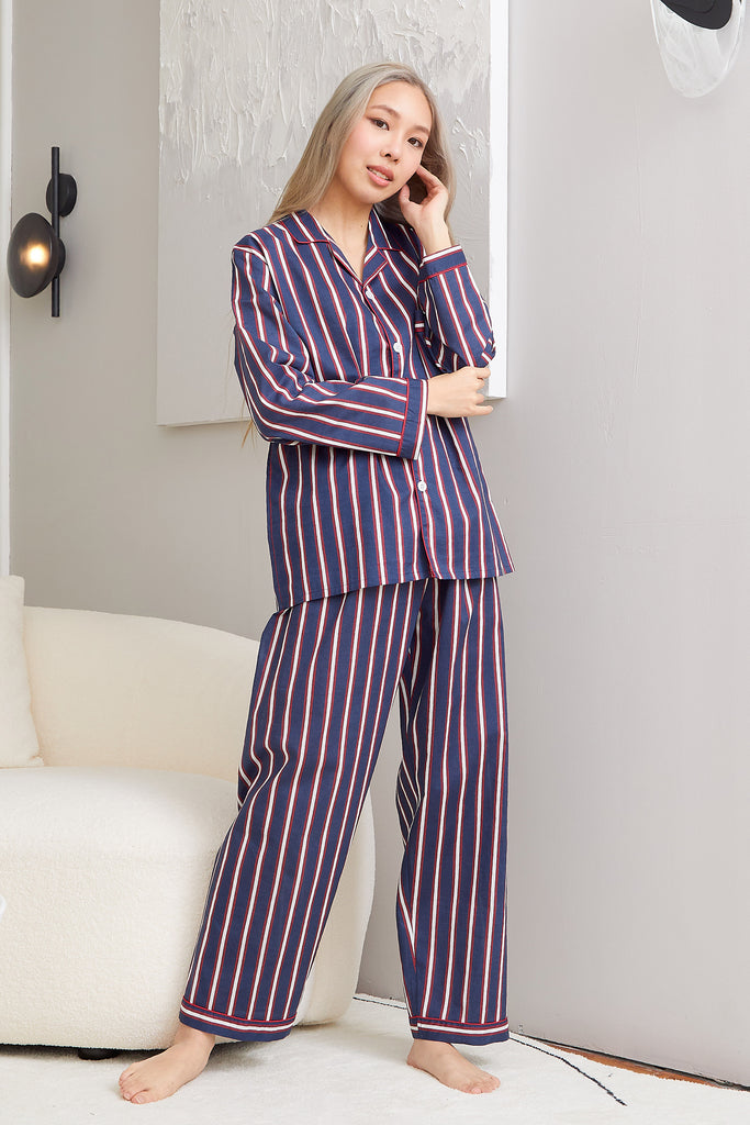 Navy Balanced Stripes Cotton Pajamas